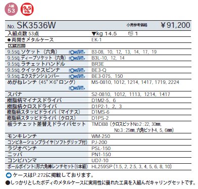 [KTC-SK3536W] 工具セット [53点] (3/8sq)