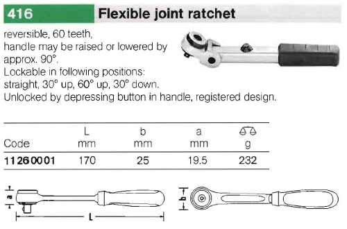 スタビレーの1/4sq 丸型ヘッドの首振りラチェットハンドルです。歯数60枚ギア・送り角6°