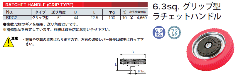 KTCのグリップ型のラチェットハンドルです。 歯数72枚ギア・送り角5°