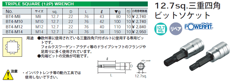 [KTC-BT4-M14] 1/2sq トリプルスクェアソケット M14
