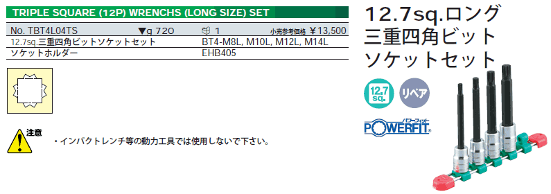 [KTC-TBT4L04TS] 1/2sq ロングトリプルスクェアソケットセット