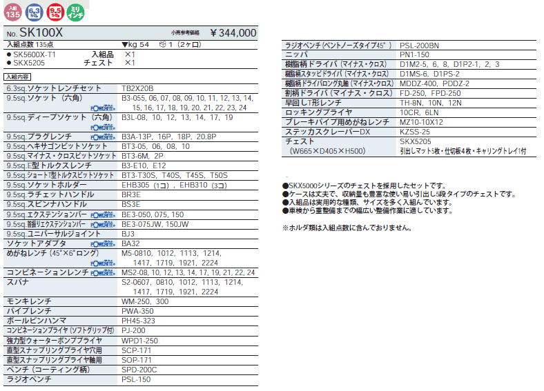 [KTC-SK100X] ハイメカツールセット [135点] (1/4・3/8sq)
