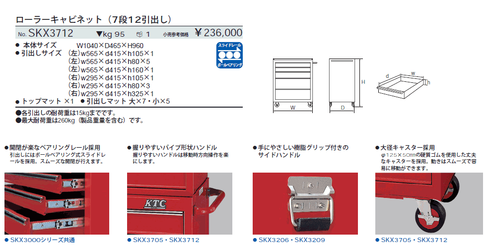 [KTC-SKX3712] ローラーキャビネット (7段12引出し)