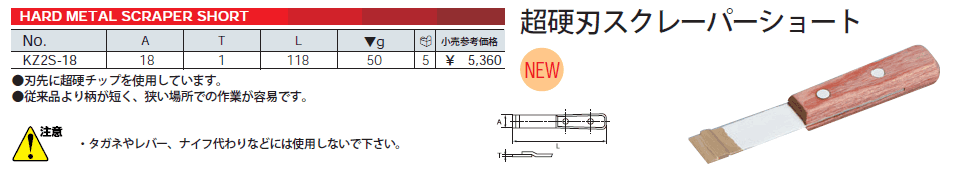 [KTC-KZ2-18] 超硬刃スクレッパー ショート