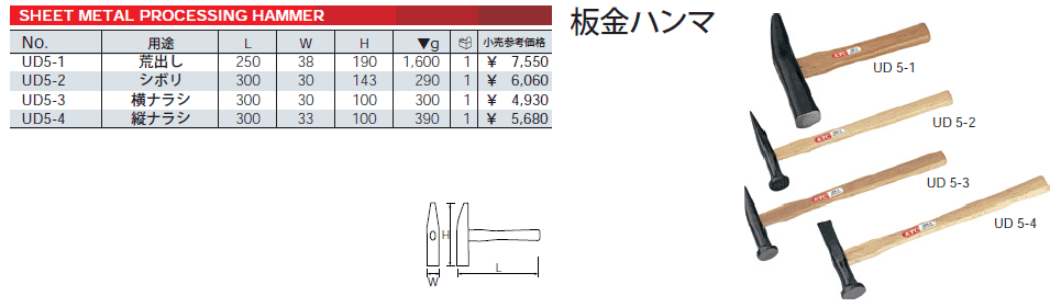 [KTC-UD5-2] 板金ハンマー (シボリ)