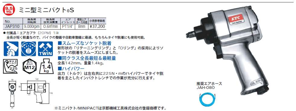 [KTC-JAP310] 3/8sq ミニ型インパクトレンチ