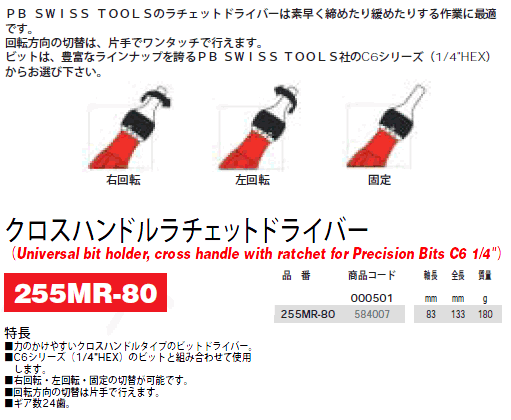 [PB-255MR-80] クロスハンドルラチェットドライバー