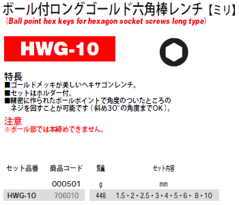 [PB-HWG-10] ボールポイントロング六角棒レンチセット [9本組]
