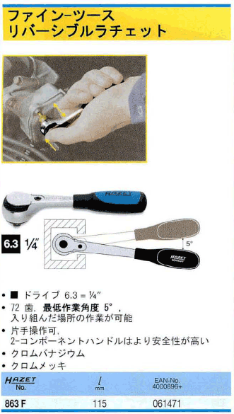[HAZET-863F] 1/4sq ラチェットハンドル