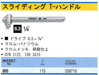 [HAZET-865] 1/4sq スライドヘッドハンドル