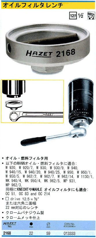 [HAZET-2168] オイルフィルターレンチ