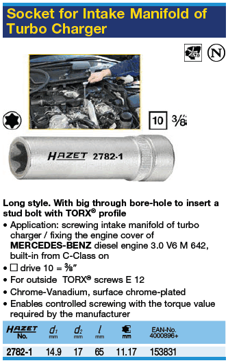 [HAZET-2782-1] インテークマニホールド用トルクスソケット E12