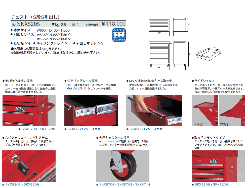 [KTC-SKX5205] チェスト (5段5引出し)