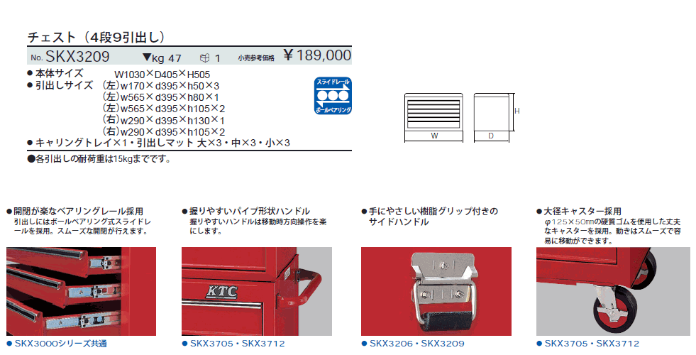 [KTC-SKX3209] チェスト (4段9引出し)