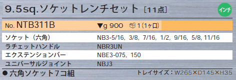 [nepros-NTB311B] 3/8sq ソケットレンチセット[11点] (インチ)