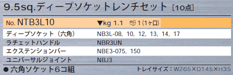 [nepros-NTB3L10] 3/8sq ディープソケットレンチセット[10点]