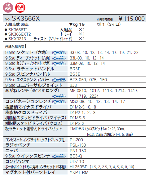 [KTC-SK3666X] 工具セット [66点] (3/8sq)