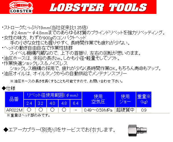 [LOBSTER-AR022M] エアーリベッター(セパレートタイプ)