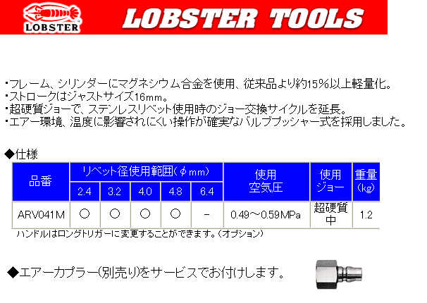 [LOBSTER-ARV041M] エアーリベッター(超軽量マグネシウムバキュームタイプ)