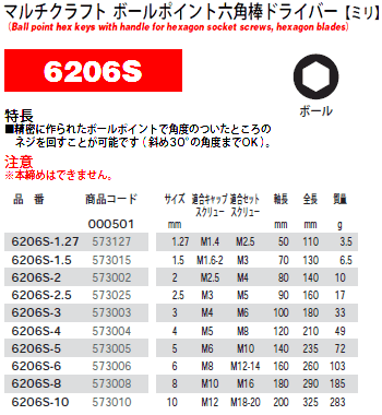 [PB-6206S-1.5] マルチクラフト ボールポイントヘックスドライバー 1.5mm