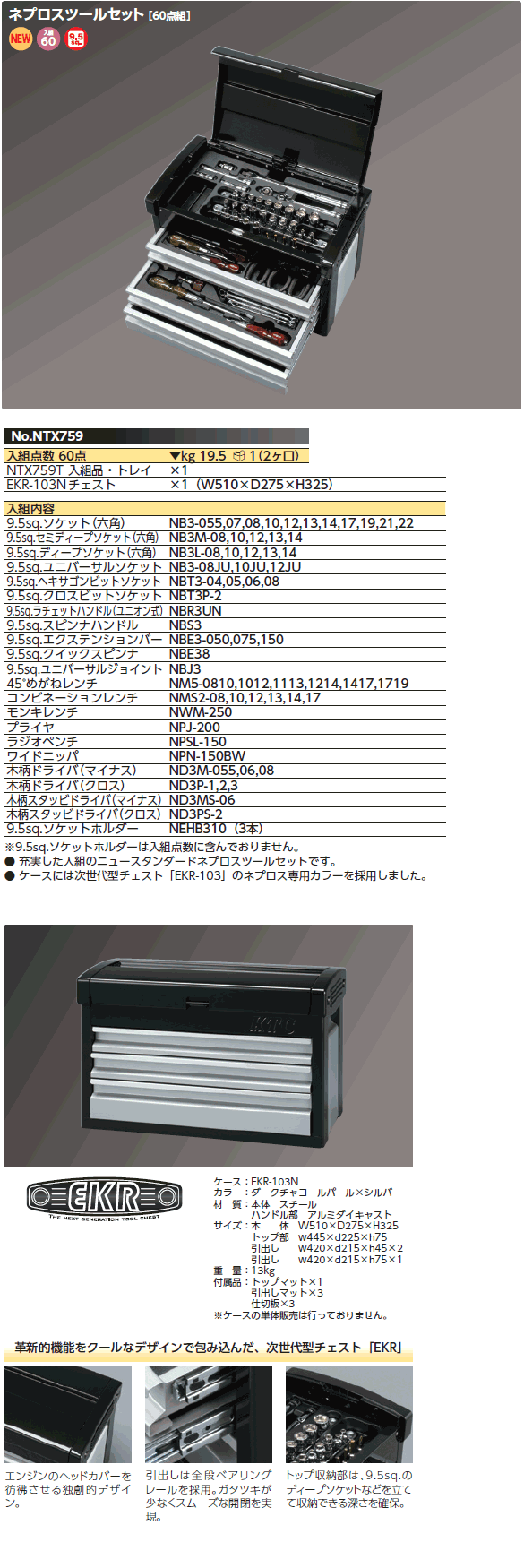 [nepros-NTX759] ネプロスツールセット [60点] (3/8sq)