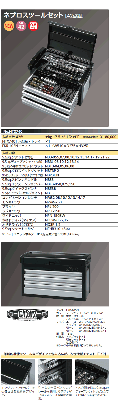 [nepros-NTX740] ネプロスツールセット [42点] (3/8sq)